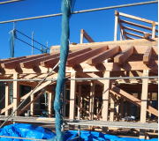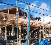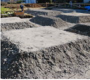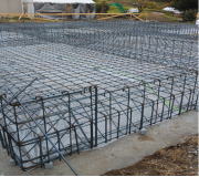 採石が固められた後、鉄筋が組まれ、型枠が設置されました。