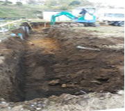 敷地全面の土を1メートル近く掘り、そこに大量の砕石投入。